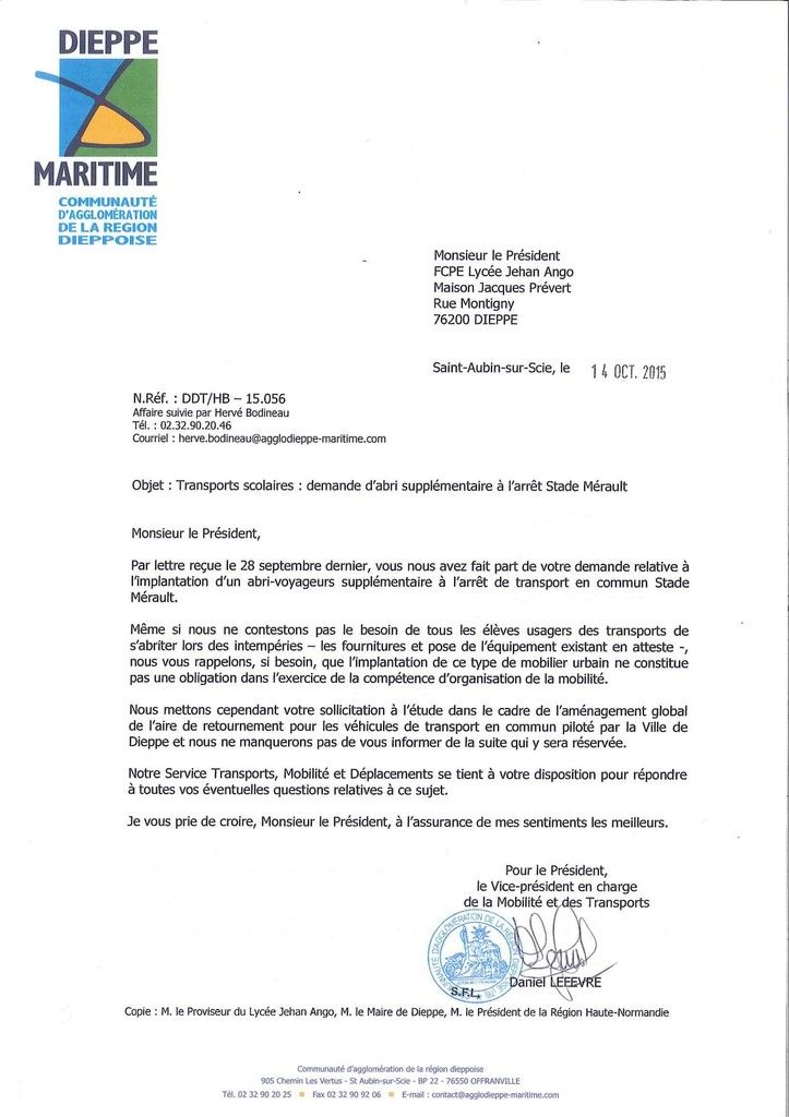 Agrandissement Abribus Reponse Du President De L Agglo Fcpe