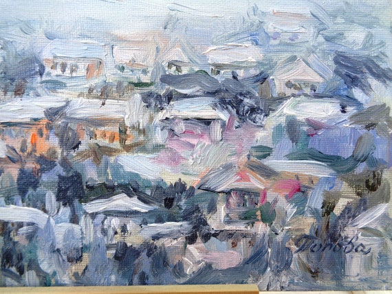 Gratuit Original Peinture A Lhuile Grecque Village Hiver Montagnes Etsy