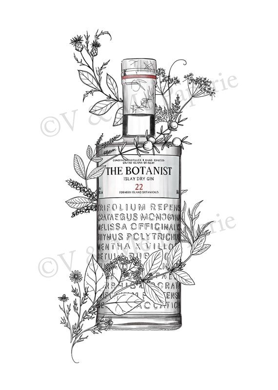 The Botanist Gin Bottle Floral Botanical Illustration Art Etsy